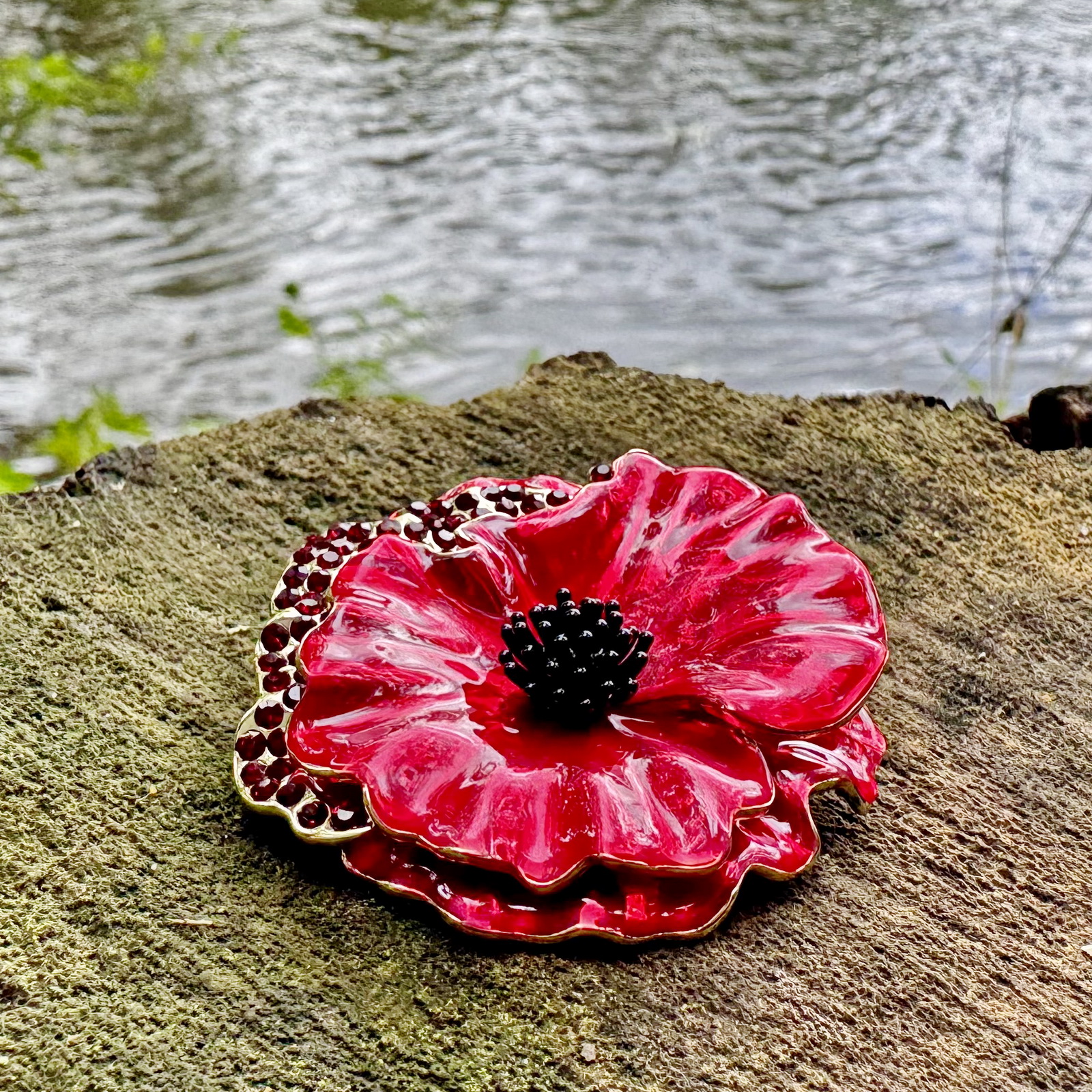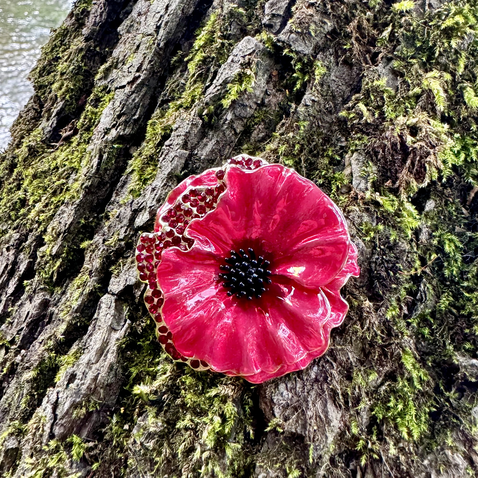 Our beautiful Poppy Red Flower Brooch with Crystals is a stunning statement brooch to add impact to your outfit.